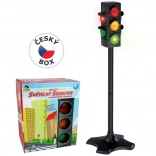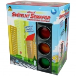 Semafor na baterije s realističnim funkcijama, idealan za učenje djece prometnim pravilima. Zahvaljujući automatskom mijenjanju svjetala i prilagodljivoj visini pruža interaktivno iskustvo za vozače i pješake.