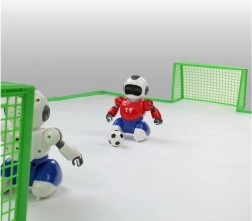 Doživite uzbuđenje nogometne utakmice s Robonogometom, gdje se dva robota nadmeću u vještini vođenja lopte u protivnički gol. Svakim robotom upravlja se zasebnim daljinskim upravljačem, što jamči maksimalnu kontrolu nad njihovim kretanjem i akcijama.