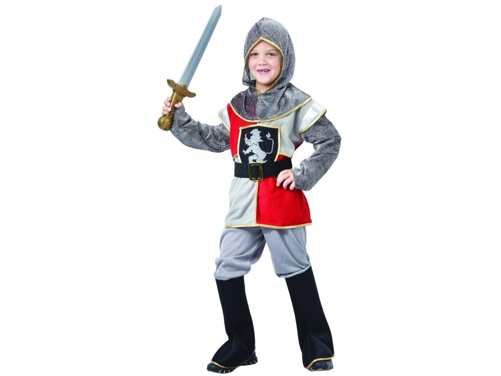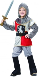 Karnevalski kostim za dječake u stilu viteza idealan je izbor za dječje zabave, karnevale ili školske priredbe. Kostim uključuje tuniku, kapuljaču, pojas i hlače s navlakama, koje će svakog dječaka pretvoriti u hrabrog viteza.