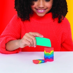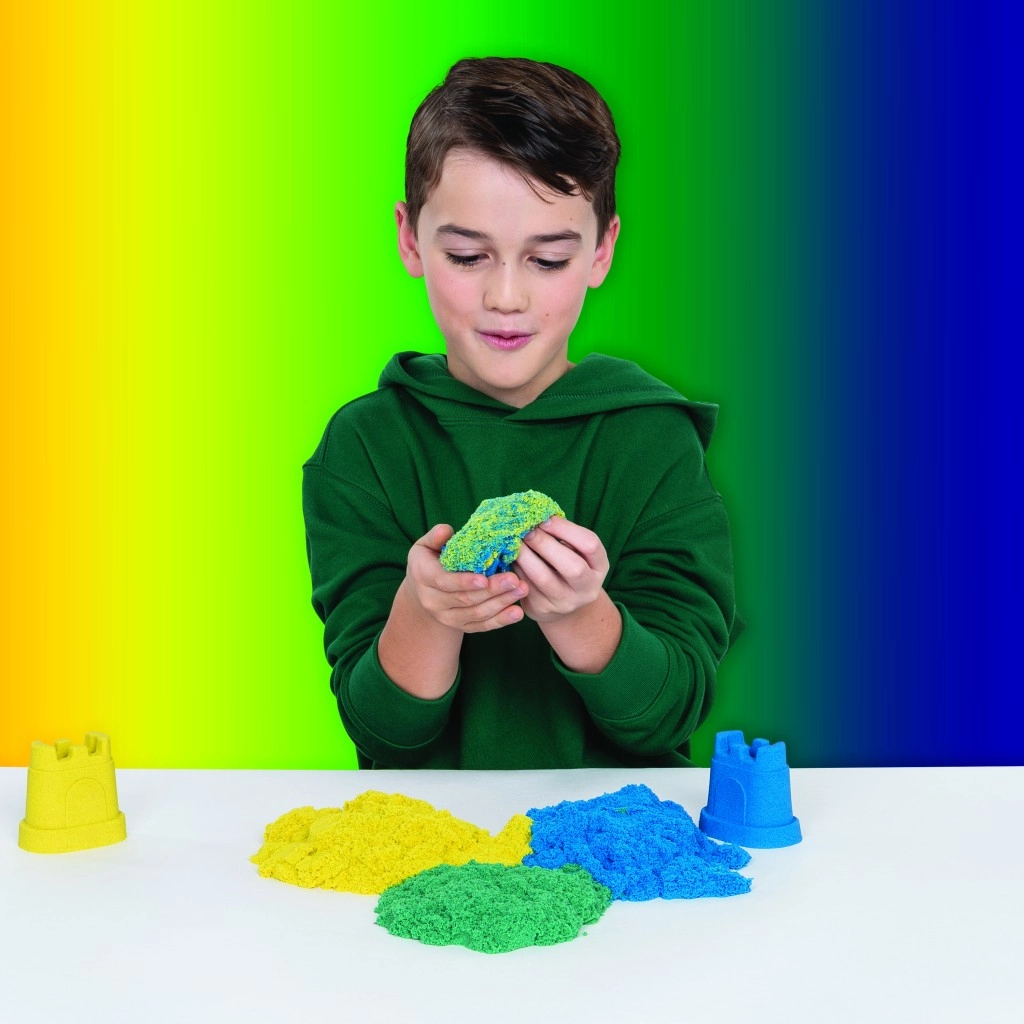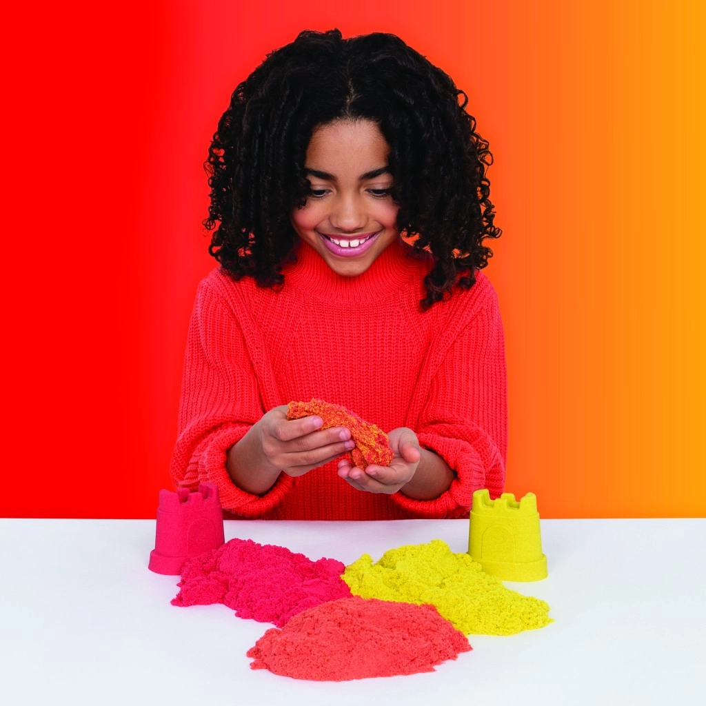 Ovaj set spaja kultni pijesak Kinetic Sand s praktičnim alatima za rezanje, miješanje i oblikovanje. Stvarajte realistične duge, slažite boje i gradite šarene dvorce – pijesak zadržava oblik, ne lijepi se i ugodan je na dodir.
