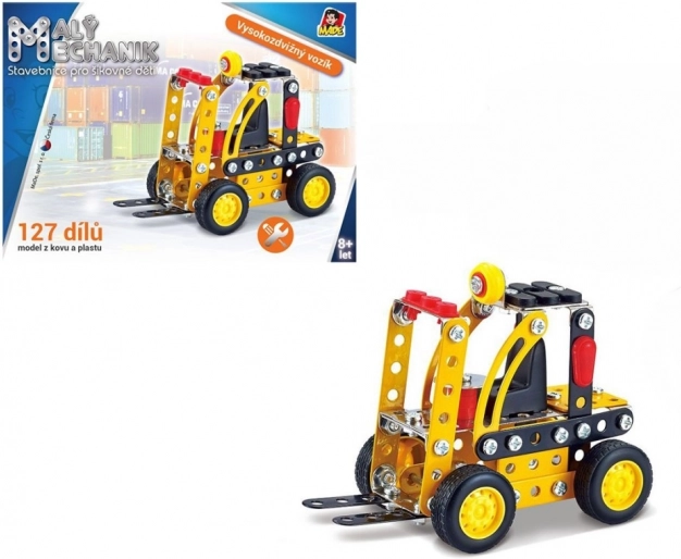 Set Mali Mehaničar pruža priliku za djecu da stvaraju i razvijaju svoje tehničke vještine u sigurnom okruženju. Ovaj set sadrži 127 dijelova koji kombiniraju metalne i plastične komponente, s kojima djeca mogu stvoriti vlastiti viljuškar.