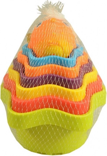 Izvrsna igračka za male graditelje koja uči osnove boja i razvija finu motoriku. Od čašica za slaganje vaše dijete može napraviti visoki šareni toranj. Također prikladna za vodu.