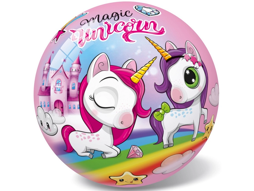 Ova lopta s jednorogom promjera 14 cm je savršen izbor za zabavu vaše djece. Izrađena od visokokvalitetne gume, osigurava dugotrajnost i sigurnost pri igranju.