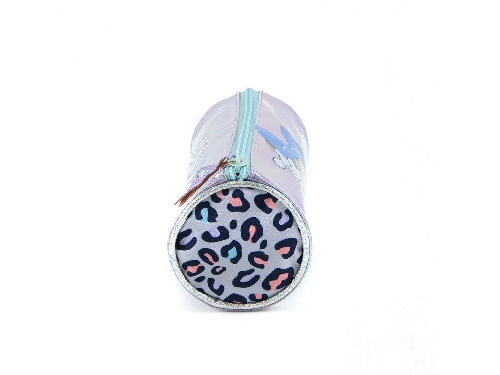 Ova prekrasna pernica s motivom Minnie idealan je dodatak za svaku ljubiteljicu stila i sjaja. Njezina iridescentna površina u purpurnoj boji s leopard uzorkom uvijek će privlačiti pažnju. Pernica je izrađena od kombinacije tekstila i plastike, što jamči njezinu izdržljivost i dug vijek trajanja.