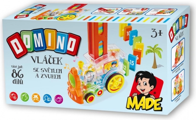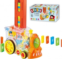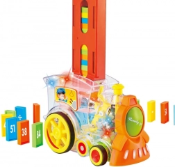 Ova originalna prozirna lokomotiva izvrstan je način za zabaviti djecu. Lokomotiva slaže domino kocke s pravilnim razmacima, što pruža jedinstven vizualni doživljaj. Igračka svira melodije koje još više pojačavaju zabavu.
