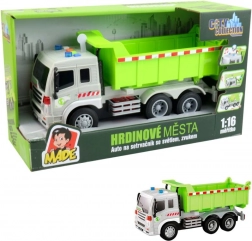 Ovaj kamion izrađen je od plastike i ima dimenzije 27 x 10 x 12,5 cm, što ga čini odličnom igračkom i za unutarnje i za vanjske igre. Inercijski pogon osigurava gladak pokret i dugu vožnju.