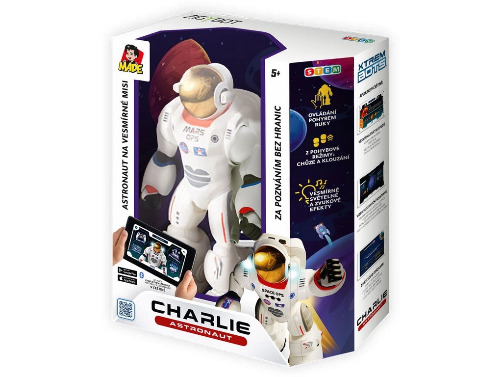 Uz edukativnu aplikaciju možete programirati do 200 pokreta i uživati u mogućnostima kao što su Kosmopedija ili zabavni Kosmo-kviz, koji testira vaše znanje o svemiru. Charlie je dodatno opremljen svjetlosnim i zvučnim efektima koji pojačavaju dojam realističnosti. Izrađen od izdržljive plastike i napajan trima baterijama tipa 1,5V AA, spreman je za svaku svemirsku pustolovinu. Hrvatski dizajn kutije i višejezična aplikacija, uključujući hrvatski, osiguravaju da je robot izvrstan izbor za svakoga tko se želi istovremeno zabaviti i učiti!