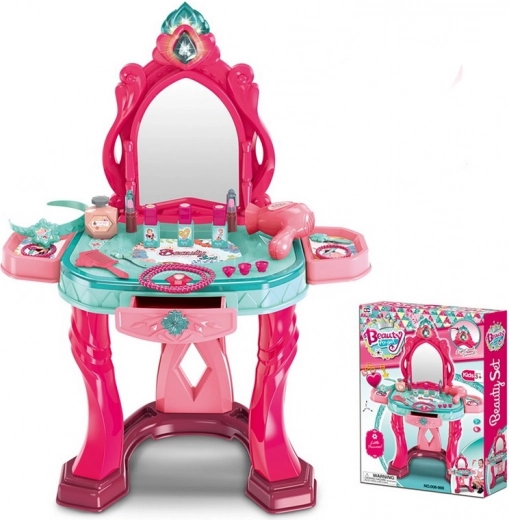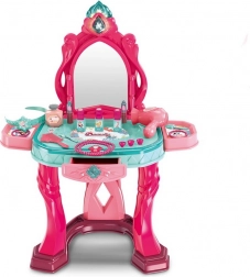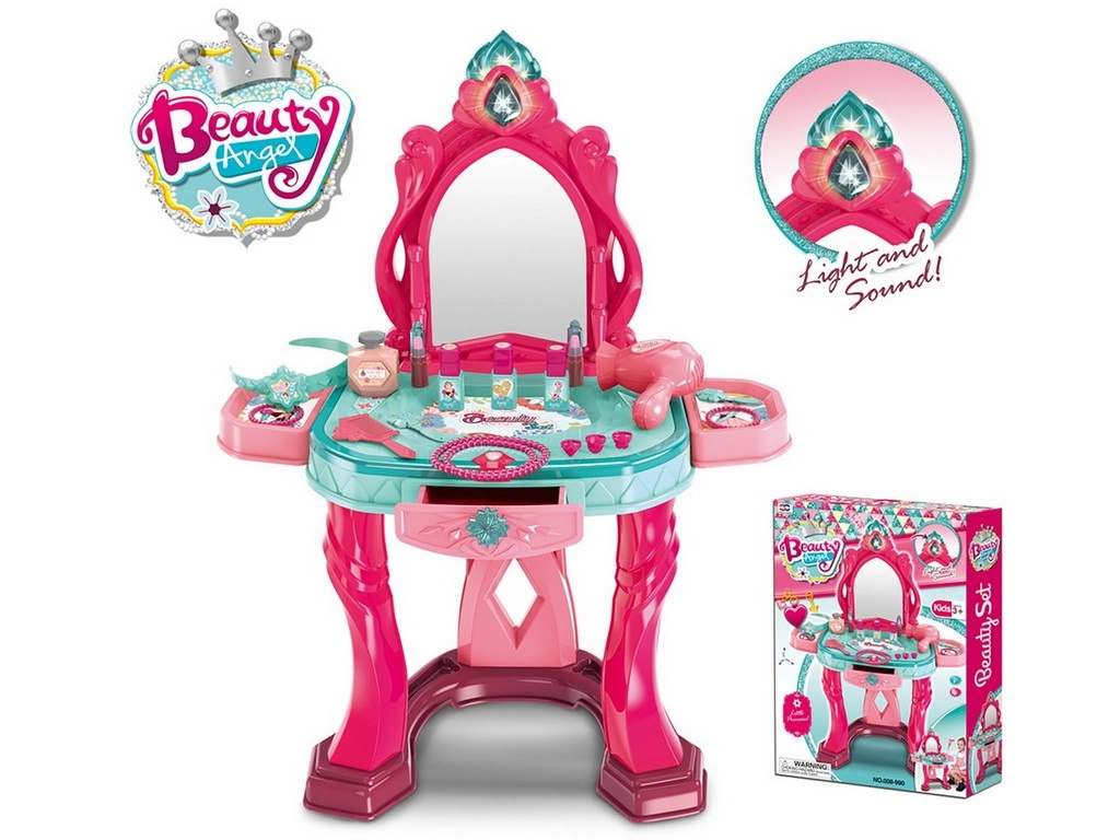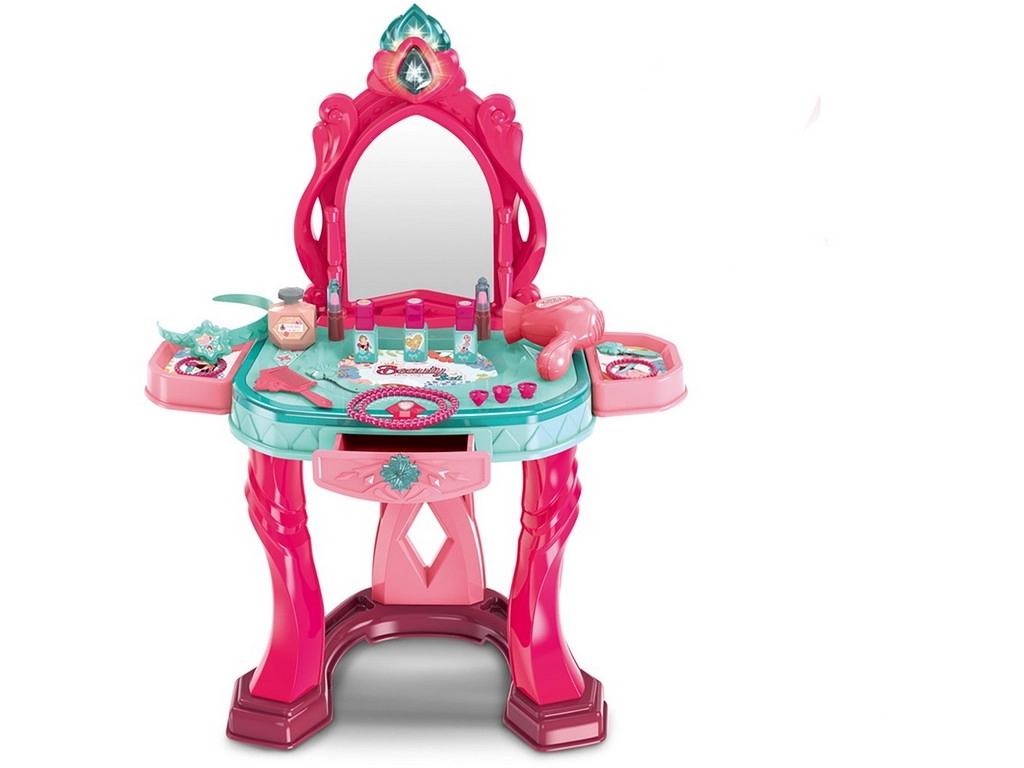 Predstavljamo prekrasan toaletni stolić, idealnog suputnika za sve male dame koje vole oponašati toaletne rituale svojih mama. Ovaj stolić ima elegantan dizajn i nadopunjen je svjetlosnim i zvučnim efektima, koji osiguravaju realističan doživljaj igre.