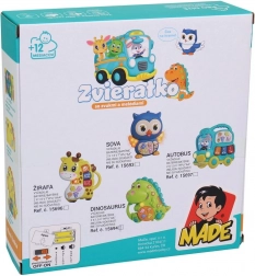 Ovo pianino u obliku sove savršen je izbor za djecu od 12 mjeseci. Potiče razvoj motorike, prepoznavanje boja, slušne sposobnosti i upoznavanje životinja. Nudi nježno osvjetljenje i nekoliko glazbenih funkcija za zabavu i učenje. Za rad su potrebne 2 AA baterije koje nisu uključene u pakiranje.