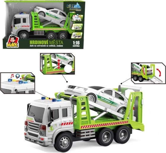 Vozilo za vuču s autom na zamašnjak sa svjetlom i zvukom sjajna je igračka za dječake koji vole autiće. Ističe se svojim realističnim svjetlosnim i zvučnim efektima koji unose živost u svaku dječju igru.