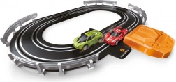 Ova autotrkačka staza idealna je za sve strastvene natjecatelje od 6 godina naviše. Zahvaljujući jednostavnom sastavljanju možete se utrkivati na dvije odvojene staze pomoću dva upravljača. Pakiranje uključuje dva različito obojena trkaća automobila. Koja će boja pobijediti u utrci?