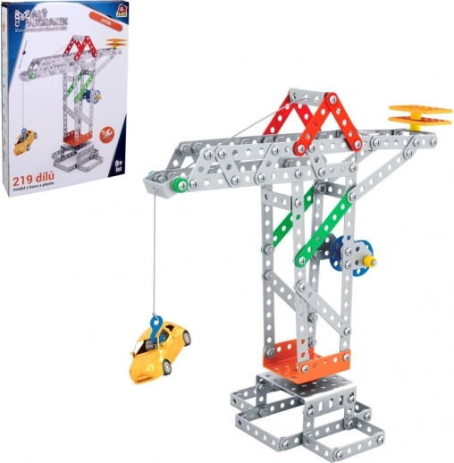 Konstruktorski set dizalice Mali Mehaničar s 219 dijelova razvija dječju kreativnost i spretnost. Prikladno od 8 godina.