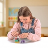 Kroz ovu igru djeca stječu osnovna iskustva s prostornom geometrijom, vježbaju svoje prostorno opažanje, koncentraciju i strpljenje. Uz pomoć QR koda moguće je preuzeti 24 predloška za slaganje. Kocka je izrađena od čvrstog 100% recikliranog drva s PEFC certifikatom i u potpunosti je reciklabilna. Isporučuje se u praktičnoj kutiji s poklopcem od reciklirane plastike i kartona. Dio pakiranja je uputa na njemačkom jeziku.