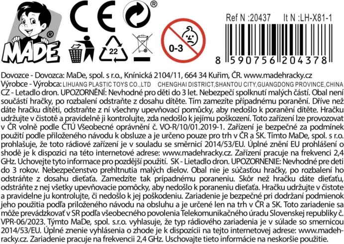 Upravljanje brzinom omogućuje osobama starijim od 14 godina da isprobaju svoje pilotske vještine bez potrebe za kamerom. Avion je izdržljiv zahvaljujući plastičnom materijalu koji jamči dug vijek trajanja.