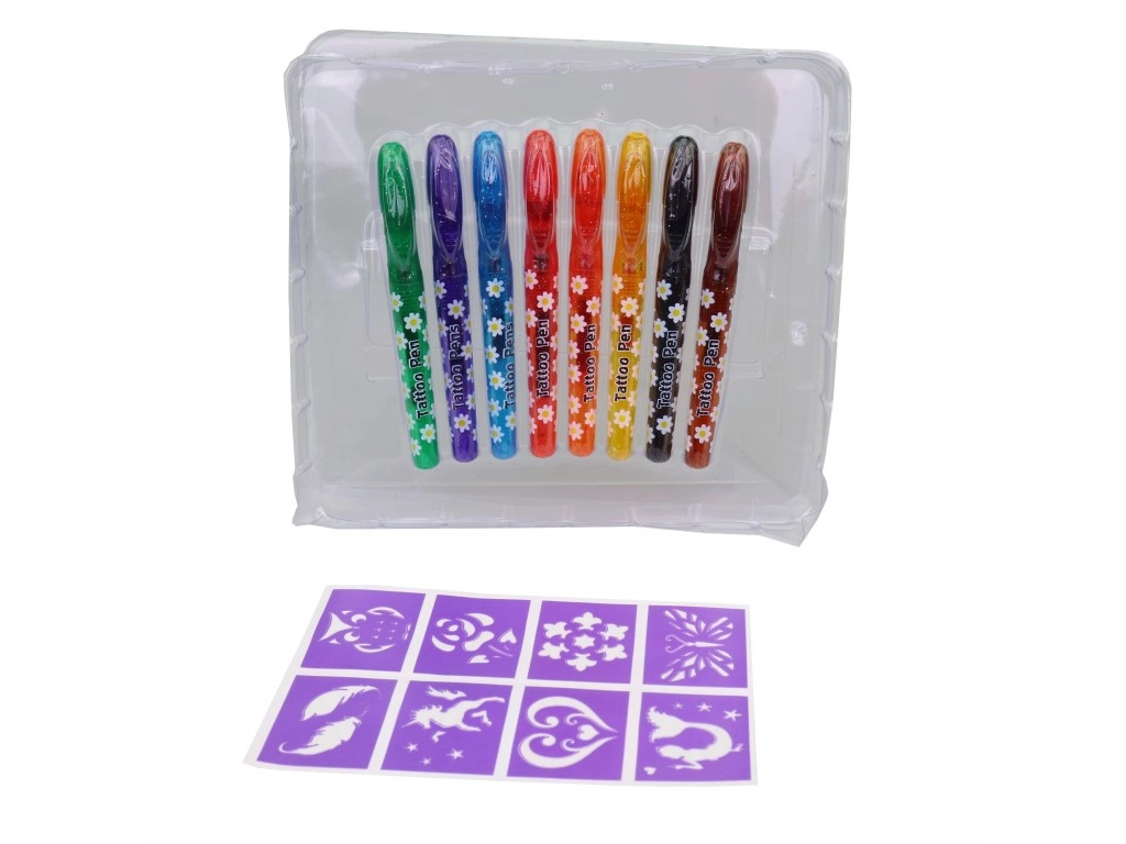 Stvorite svoj vlastiti originalni tetovažni crtež uz pomoć tetovažnih olovki s 8 različitih boja. Jednostavno korištenje poput crtanja olovkom, s paketom koji sadrži 8 šablona za savršen izgled.