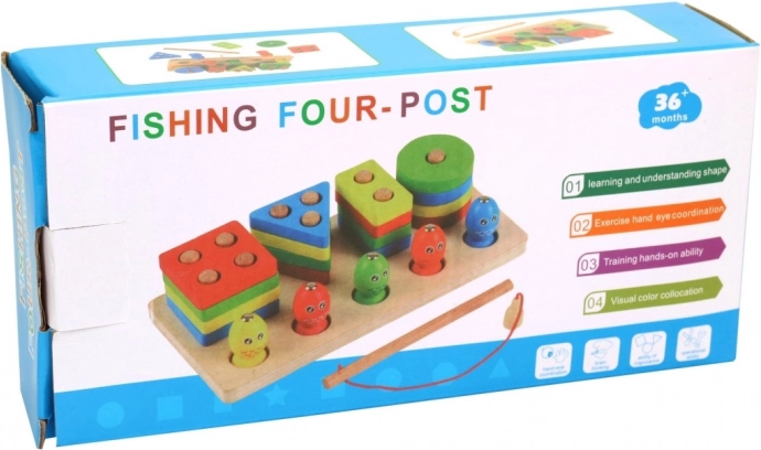 Ova drvena slagalica nudi dvije različite igre, koje kod vaše djece potiču strpljivost i usredotočenost. Prvi dio se sastoji od geometrijskih oblika u osnovnim bojama, koje treba ispravno smjestiti u otvore. Drugi dio donosi zabavu s lovljenjem šarenih ribica pomoću magnetskog štapa. Obje igre pridonose razvoju fine motorike i koordinacije oko-ruka.