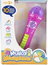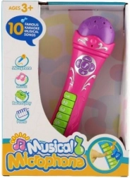 Mikrofon s unaprijed snimljenim pjesmama, plastika 23 cm, ružičasti, na baterije, sa zvukom, u kutiji 20 x 27 x 6,5 cm