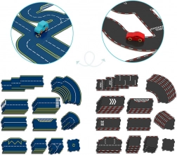 Dvosmjerna trkaća staza Vilacity je izrađena od laganog, ali čvrstog kartona, koji omogućuje lako slaganje i ponovno sastavljanje. To prirodno razvija koordinaciju pokreta i finu motoriku. Pakiranje sadrži dva drvena autića kojima djeca mogu upravljati, utrkivati se ili stvarati vlastite prometne priče. Vožnjom autića dijete usvaja osnovna načela suradnje te vježba preciznost i koncentraciju.