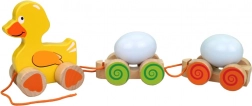 Drveno povlačilo Patkica osmišljeno je tako da privuče pozornost malih mališana i potakne ih na igru. Ova simpatična patkica na povlačenje idealna je za razvoj dječje motorike i koordinacije pokreta. Djeca mogu uživati u satima zabave povlačeći ovu drvenu igračku za sobom.