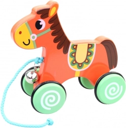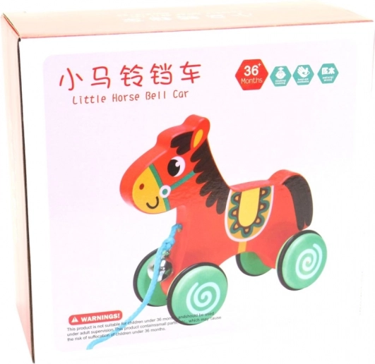 Ova drvena igračka na povlačenje u obliku konja donosi ne samo zabavu, već i potiče osjetila zahvaljujući zvončiću koji pri kretanju ispušta nježan zvonki zvuk. Izrađena je od kvalitetnog drveta i ima dimenziju 16 cm, što je čini lako upravljivom za male dječje ruke.