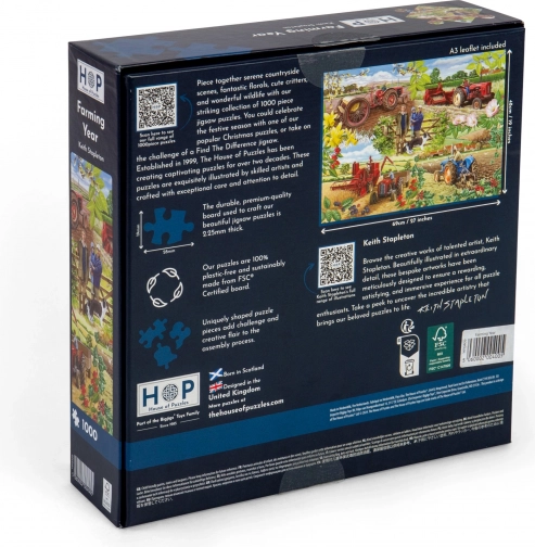 Puzzle Farmerova godina brenda House of Puzzles nude jedinstveno iskustvo sa svojim posebno oblikovanim dijelovima. Složite prekrasnu sliku farmerove godine koja će vas zabaviti na dugačke sate.