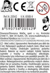Otkrijte zabavu s ovim odličnim dječjim mačem, idealnim za male vitezove ili superjunake. Izrađen je od kvalitetne plastike i jednostavan je za držanje za djecu od 3 godine naviše. Zahvaljujući svjetlosnim i zvučnim efektima pruža realistične mogućnosti igre. Mač radi na 3 AAA baterije, što osigurava dugotrajnu funkcionalnost.