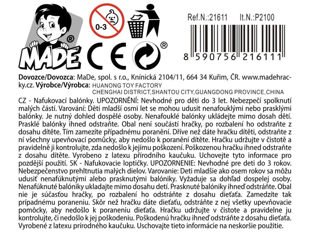 Ovaj set sadrži balone izrađene od kvalitetne plastike, dimenzija 28 x 5 x 5 cm. Namijenjen je djeci od 3 godine naviše i idealan je za izradu raznovrsnih napuhanih figurica. Baloni će oživjeti svaku proslavu svojim veselim bojama.