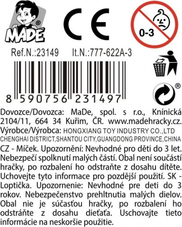 Šarene loptice promjera 7 cm idealna su igračka za djecu od tri godine. Praktično pakiranje sadrži tri loptice smještene u mrežici, što olakšava pohranu i prenošenje. Zahvaljujući živim bojama donose zabavu i razvoj osjetilnih vještina.