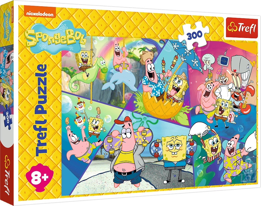 Ovaj set puzzli donosi vam omiljeni svijet junaka s morskog dna koji možete slagati u udobnosti doma. Uz motiv SpongeBoba i njegovih prijatelja u Bikini Bottomu uživat ćete u satima zabave koja obogaćuje.
