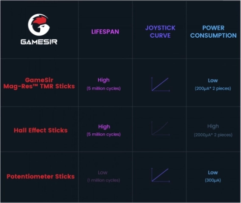 - GameSir Mag-Res TMR (kombinacija potenciometra i Hall efekta)