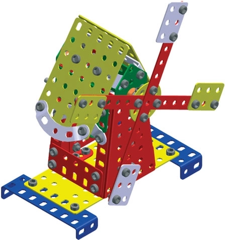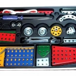 Sadrži veliki broj komponenti uključujući vijke i perforirane dijelove za šire mogućnosti sklapanja.