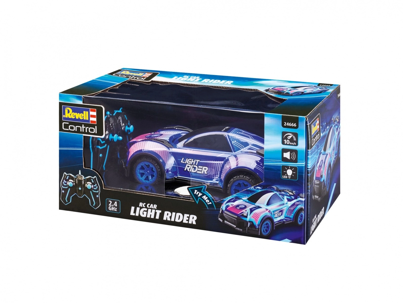 RC auto Light Rider u mjerilu 1:16 donosi realističan dizajn i zadivljujuće svjetlosne režime koji obogaćuju svaku noćnu utrku. Vožnja s 2,4 GHz daljinskim upravljačem omogućuje sudjelovanje više vozila istovremeno, što znači još više uzbuđenja u noćnim vožnjama.