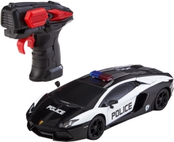 Daljinski upravljani automobil Revell Control Lamborghini Aventador Police savršen je izbor za ljubitelje adrenalinskih potjera. S duljinom od 200 mm, širinom 95 mm i visinom 52 mm, ovaj model u mjerilu 1:24 nudi impresivne detalje i realističan izgled. Pažnju privlači njegov policijski dizajn. Daljinski upravljano vozilo opremljeno je upravljačem 2,4 GHz, koji omogućuje glatko upravljanje i domet do 30 metara. Zahvaljujući snažnom električnom motoru može postići brzinu do 10 km/h, što omogućuje doživljaj uzbudljivih automobilskih potjera. Prijanjajuće gume osiguravaju optimalnu trakciju na raznim podlogama, a prednja LED rasvjeta stvara uzbudljivu atmosferu i u mraku.