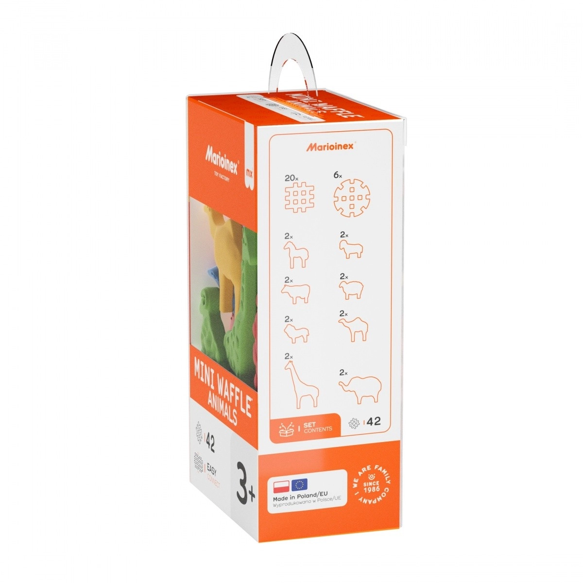 Predstavljamo novitet brenda Marioinex - Mini Waffle Životinje, izvanrednu građevnu igru koja djeci otvara svijet kreativne igre! Sastoji se od 42 dijela, uključujući plosnate figurice životinja i klasične kockice Mini Waffle koje se mogu međusobno spajati i stvarati fascinantne konstrukcije. Zahvaljujući jedinstvenom obliku kockica i njihovoj mekanoj, elastičnoj strukturi, slaganje je intuitivno i ugodno čak i za najmlađu djecu.