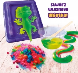 Unesite kreativnost i zabavu u igru uz Set Slumi Science - Antistresni Kameleon! S ovim paketom vaše dijete može lako i brzo izraditi fantastičnog kameleona koji mijenja boje. Postupak je jednostavan: pomiješajte čarobne tekućine, dodajte prašak koji mijenja boju, ulijte smjesu u kalup i promatrajte kako vaš kameleon oživljava.
