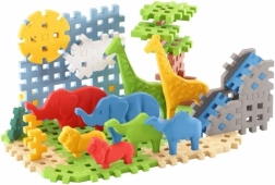 Uz konstrukcijski set Mini Waffle - Životinje savane djeca mogu stvarati vlastiti fantastični svijet prepun afričkog života. Sadrži 50 dijelova različitih oblika koji omogućuju izradu scenskih elemenata, poput slikovitog vodopada i dojmljive pozadine savane. Dio seta je i lavlja obitelj na suncu, slonovi na pojilištu te žirafe na horizontu.