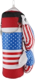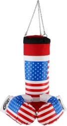 Boksačka vreća i rukavice dizajnirane su s motivom američke zastave, što donosi zaigran i šaren izgled.