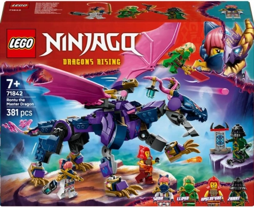 Zaronite u treću sezonu serije NINJAGO: Uskrsnuće zmajeva i ovladajte moćnim zmajem Rontuom. Model oduševljava zglobnim krilima, repom, glavom i čeljustima, zahvaljujući čemu lako zauzima dinamične poze. Na leđima se nalaze dva sedla za minifigurice, a ispod svakog krila pucač za uzbudljive dvoboje.