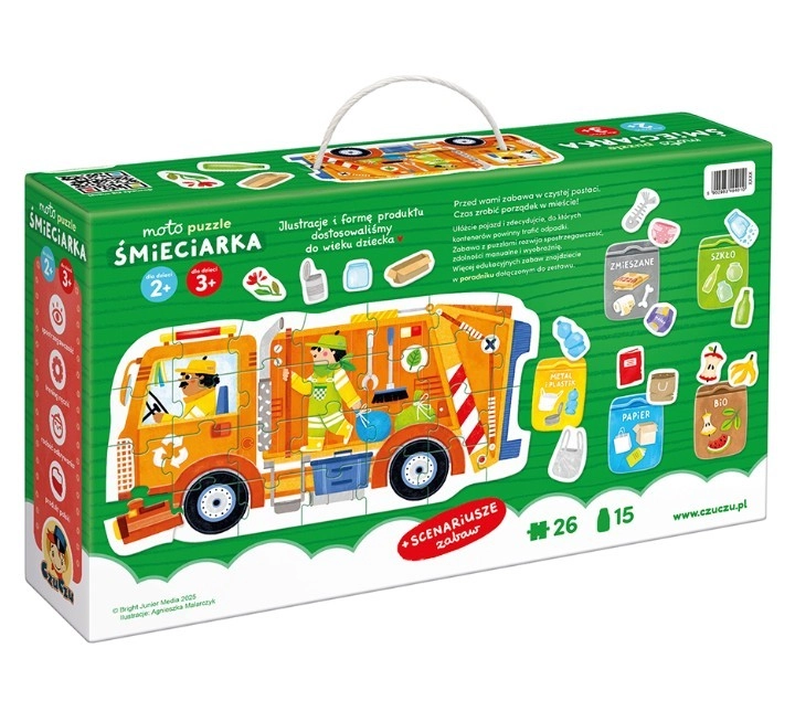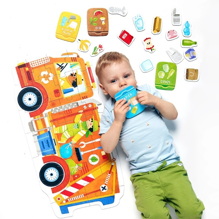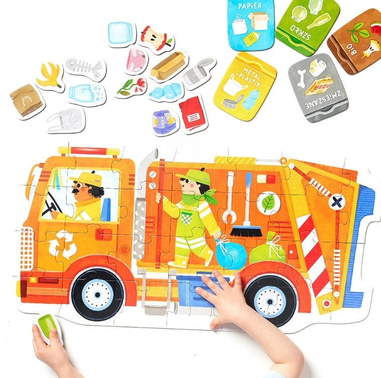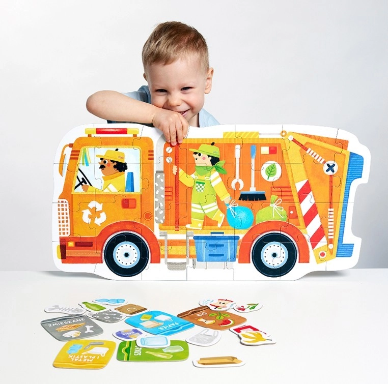 Puzzle Moto - Kamion za smeće je jedinstveni edukativni set za znatiželjne istraživače. Uživajte u kreativnoj igri i zabavnom učenju principa razvrstavanja otpada i ekologije s ovim sjajnim poklon setom.