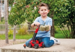 Teleskopski utovarivač Truxx2 izrađen je od visokokvalitetne plastike i ima vrlo čvrstu konstrukciju. U kompletu je i odvojiva kabina s figuricom te gumirana kotača za tihi rad.
