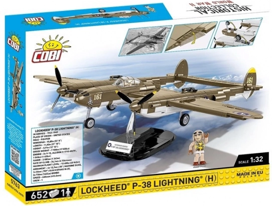 Otkrijte povijest i eleganciju legendarnog zrakoplova uz ovaj set P-38H od COBI-ja u mjerilu 1:32. Dizajnirao ga je Clarence Kelly Johnson; P-38H je bio ključni lovac tijekom Drugog svjetskog rata, poznat po jedinstvenoj konstrukciji s dvostrukim trupom i snazi dvaju motora Allison V-1710-111.