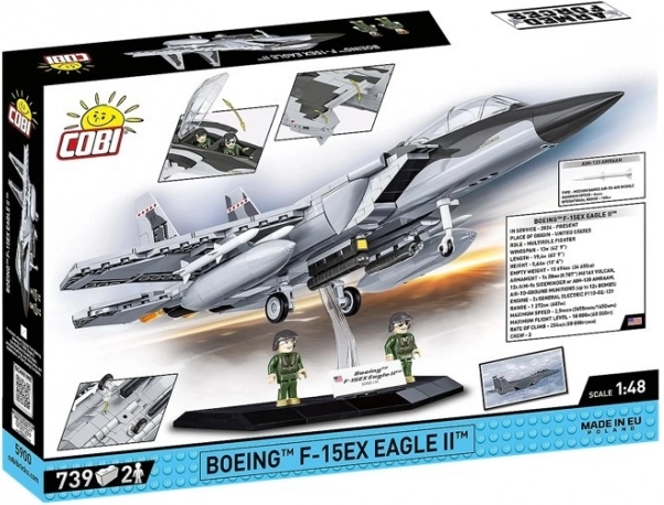 Konstrukcijski set Boeing F-15EX Eagle II sa 739 dijelova za realistično i zabavno sastavljanje. Pogodno za ljubitelje i kolekcionare.