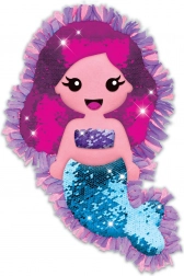 Otkrijte zabavan put do vlastite mekane igračke – jastučić sirene sastavit ćete lako uz pomoć čvorića. Bez šivanja i bez igle, samo uživanje u stvaranju. Prethodno izrezani dijelovi od mekanog flisa, šljokica i filca imaju ljepljivu podlogu i spremni su za brzo sastavljanje.