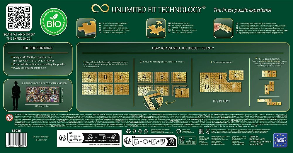 Otkrijte čaroliju slaganja s puzzlama TREFL Čarobne Mačke, koje vam nude neograničene mogućnosti zahvaljujući tehnologiji Unlimited Fit Technology. Slažite prema vlastitoj zamisli ili prema priloženoj predlozi. Pakiranje sadrži: