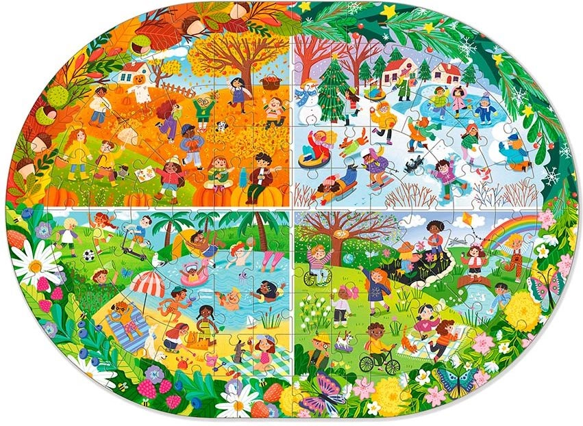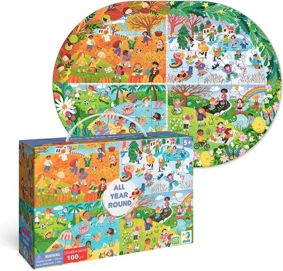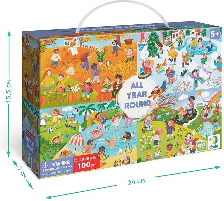 Puzzle DODO – Tijekom cijele godine idealan je poklon za svakog ljubitelja slagalica. Ova slagalica sadrži 100 dijelova koji prikazuju šarenu i detaljnu sliku pojedinih godišnjih doba. Složena slagalica ima dimenzije 45 x 33 cm, što je savršena veličina za uokvirivanje i izlaganje.