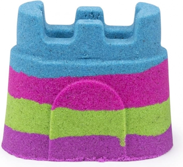 Varijanta Mini Dugin dvorac sadrži 140 g pijeska u četiri boje (plava, zelena, ljubičasta, ružičasta). Čašica u obliku dvorca poslužit će kao kalup za gradnju i kao praktično spremište – nakon igre pijesak jednostavno spremite unutra i spreman je za novo stvaranje.