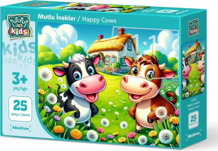 Ove puzzle Sretne kravice idealne su za sve ljubitelje slagalica. Sadrže 25 dijelova koji nakon slaganja stvaraju sliku veselih kravica. Ne samo da su zabavne, već i pomažu razvijati finu motoriku i strpljenje.