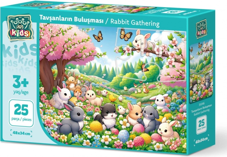 Puzzle Susret zečića idealan je izbor za djecu koja vole slagati i otkrivati nove slike. Ovaj set sadrži 25 dijelova koji tvore prekrasnu sliku zečića.