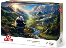 Otkrijte radost slaganja s našim jedinstvenim setom slagalice Sklonište za pande od 500 dijelova, koji vas uvodi u svijet mira i nade, dimenzija 48 x 34 cm.