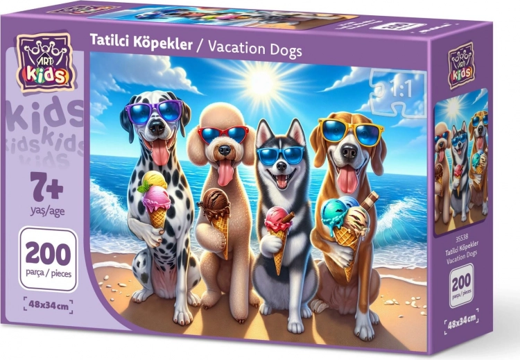 Razigrana slagalica za ljubitelje životinja – otkrijte čaroliju odmora s ovom jedinstvenom puzzle slagalicom od 200 dijelova s motivom pasa.